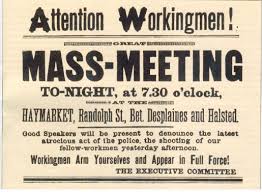 El 1 de mayo reclamó la introducción de la jornada de 8 horas. Pero incluso después de haberse logrado este objetivo, el 1 de mayo no fue abandonado. Mientras la lucha obrera contra la burguesía y las clases dominantes siga, mientras todas las demandas no se cumplen, el 1 de mayo será la expresión de estas demandas anuales. Y cuando se levantarán tiempos mejores, cuando la clase obrera del mundo haya ganado su liberación también entonces la humanidad probablemente celebrará el 01 de mayo, en honor de las muchas luchas amargas y los sufrimientos del pasado.